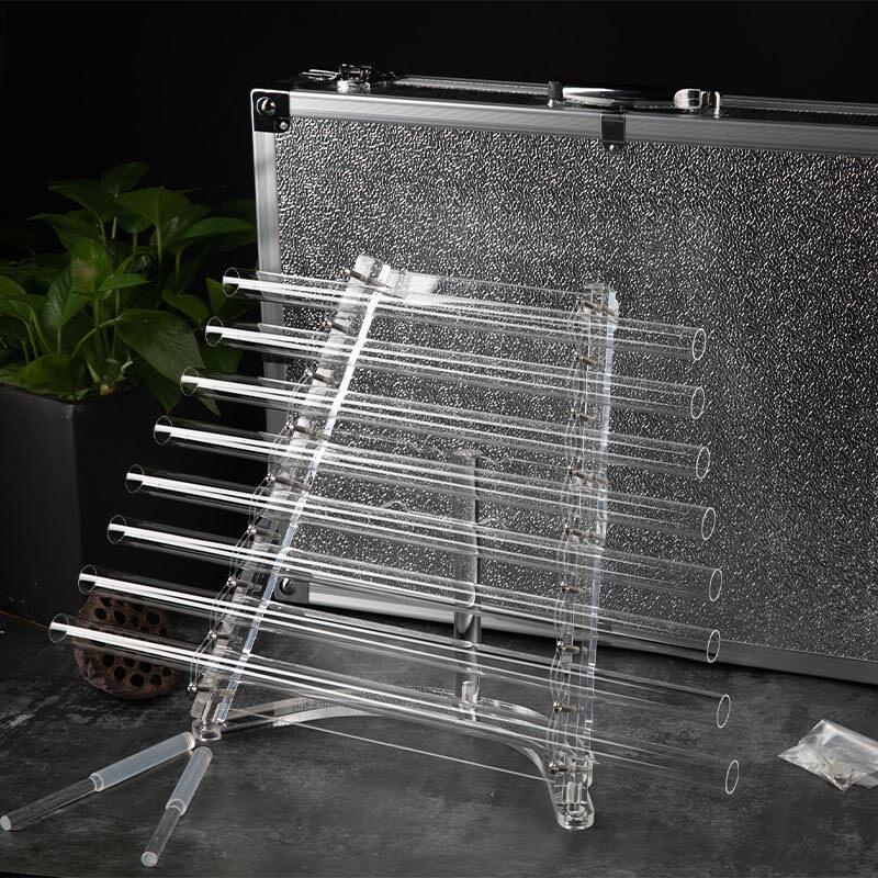 Discover the unique sound and transparent beauty of the Clear Crystal Singing Harp. Perfect for stress relief, this crystal harmony harp will bring a sense of calm to any space. Add it to your collection of home or office decor and experience the healing power of quartz.